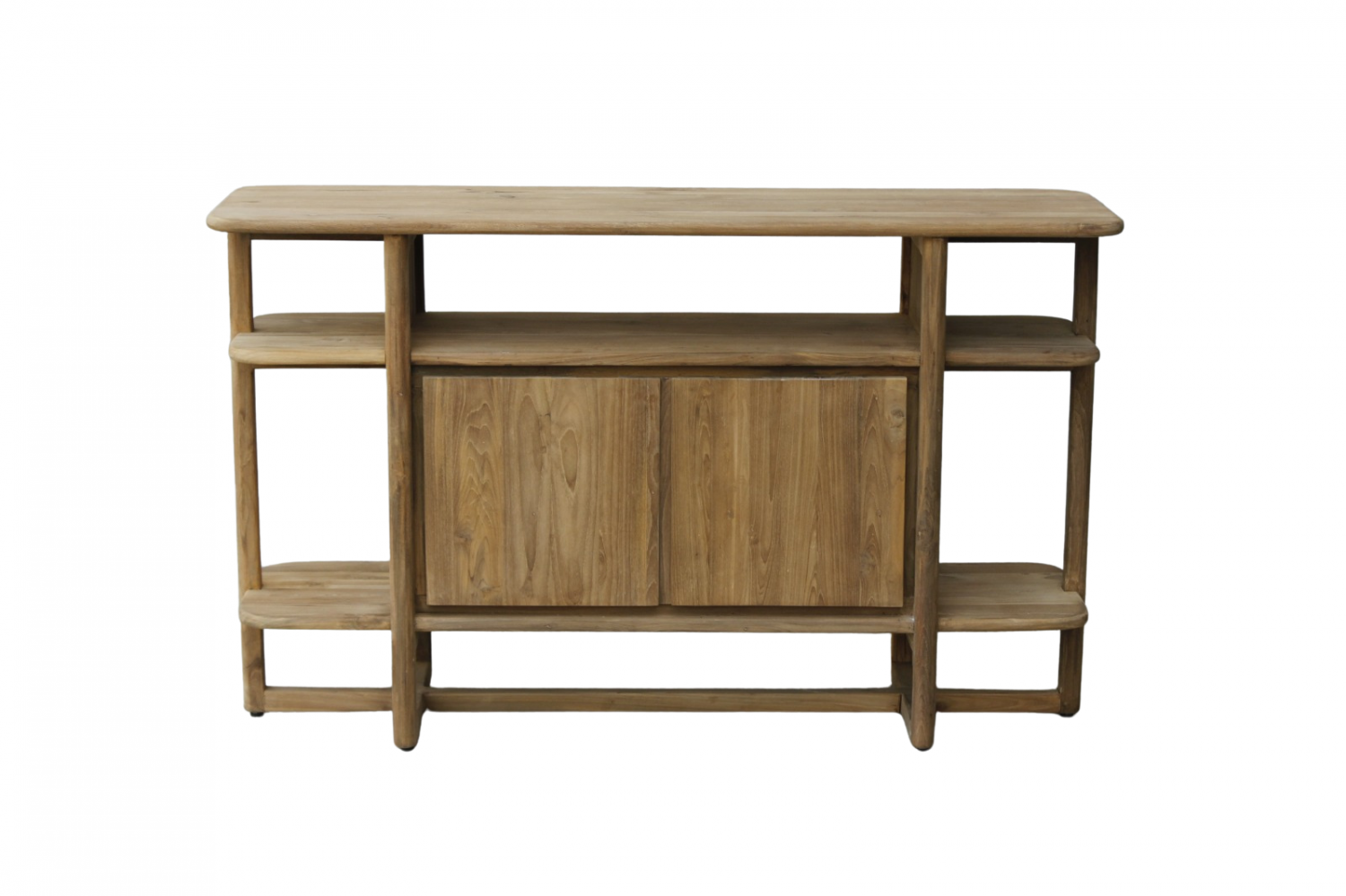 Featuring a spacious tabletop, open shelving on both sides, and a closed cabinet with double doors at the center, this sideboard offers versatile storage for dining essentials, décor, books, or everyday household items. The open shelves provide easy access and display space, while the enclosed cabinet keeps items neatly hidden for a clutter-free look.