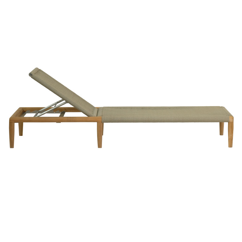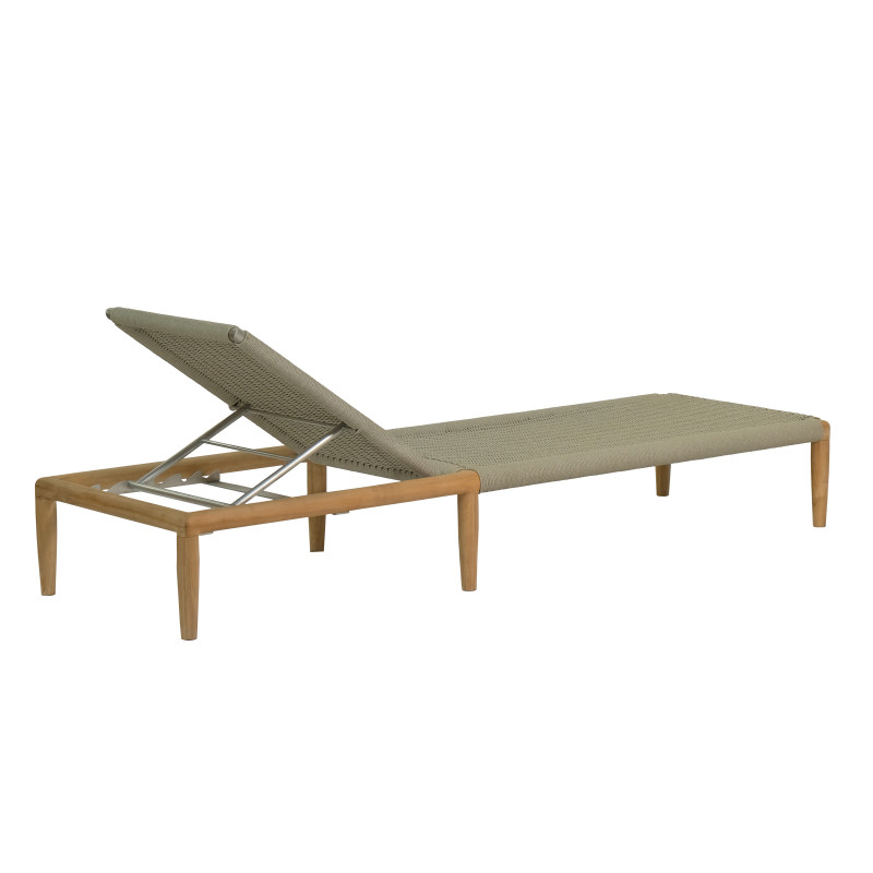 The frame is crafted from solid, weather-resistant wood, built to withstand the elements gracefully. The innovative use of woven synthetic rope for the seating area is a key feature, offering a supportive, quick-drying surface that stays cool even in direct sunlight. The adjustable backrest mechanism allows you to effortlessly select the perfect angle for sunbathing or reading.