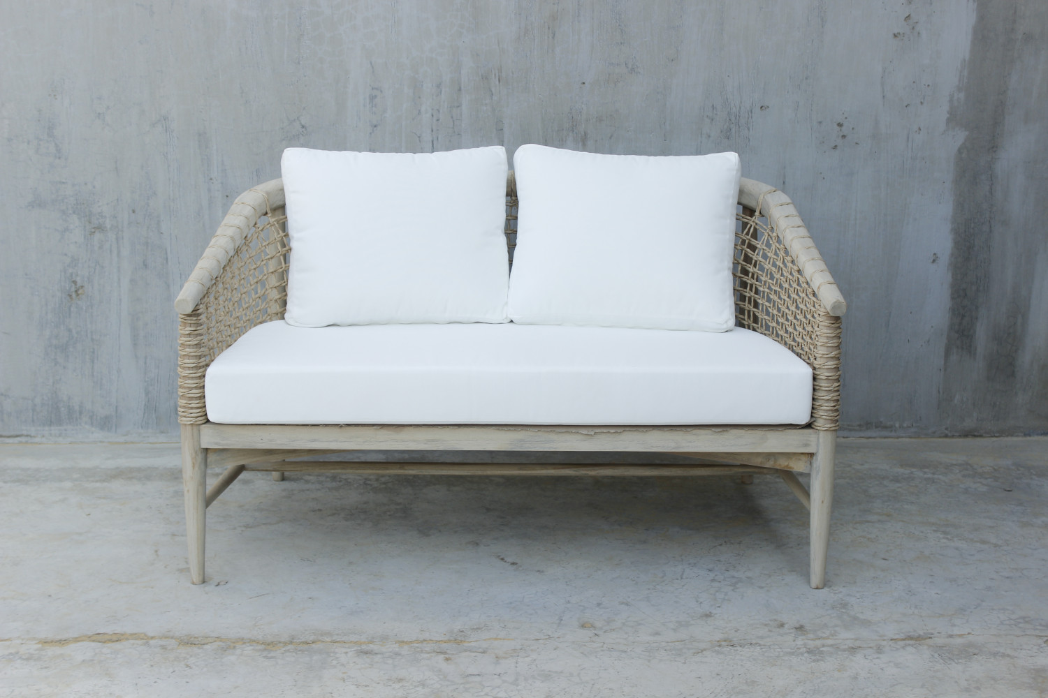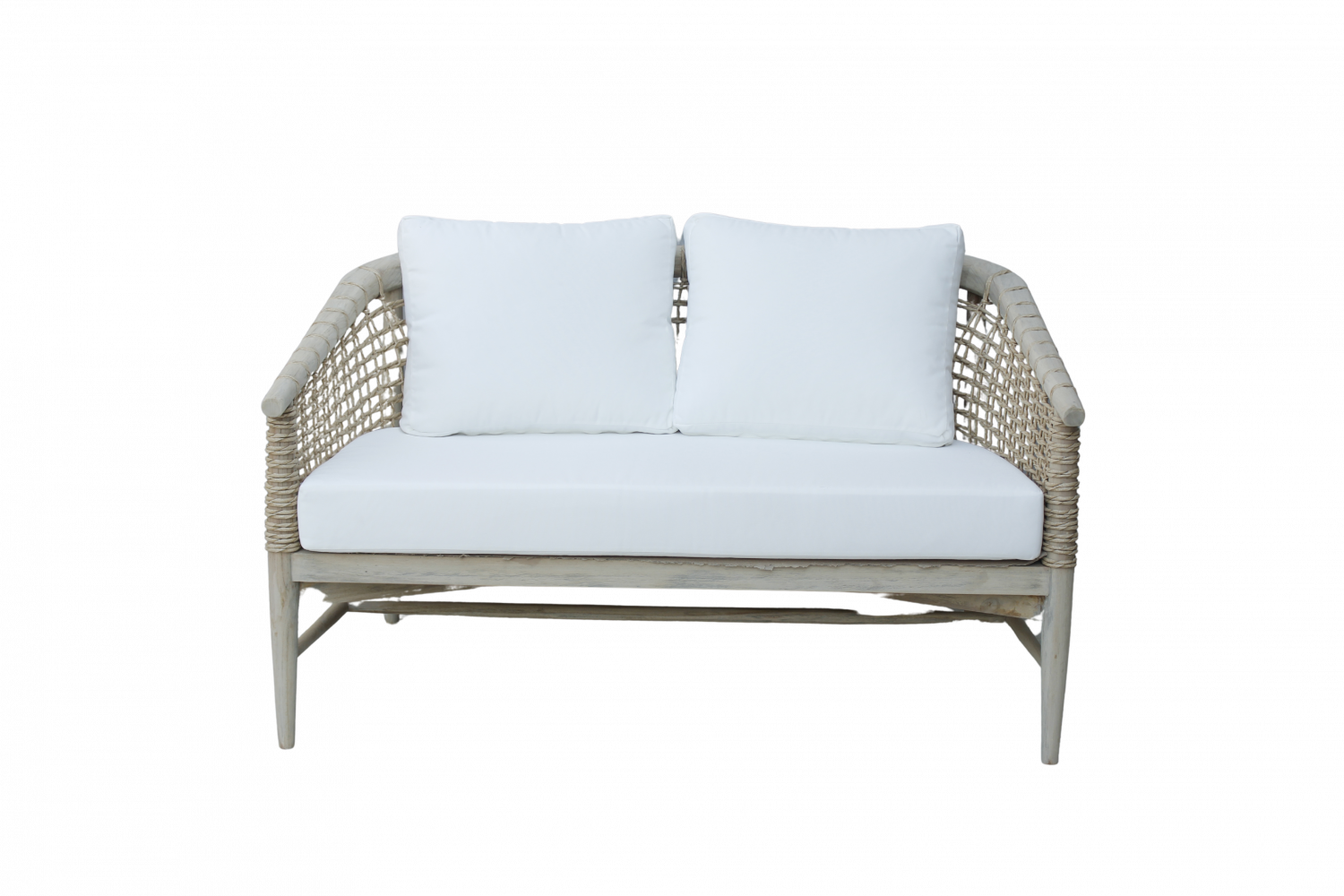 -NW : 30 kgBring natural elegance and relaxed comfort into your living space with this beautifully crafted 2-seater sofa. Designed with a sturdy wooden frame and handwoven rope sides, this sofa blends timeless craftsmanship with a modern tropical aesthetic.
