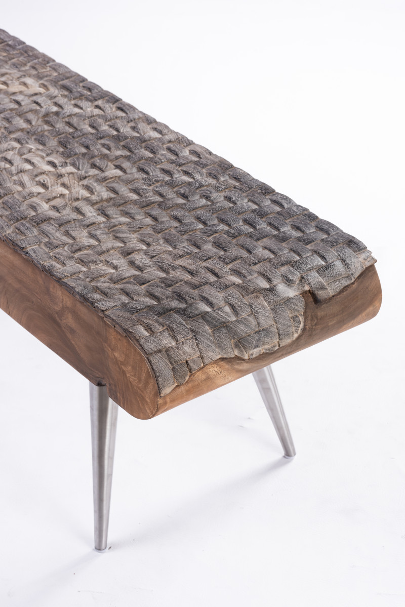 The initial idea rose because of a piece of wood that was split and not functioning properly. This incident sparked the idea of webbing, of woven fibers. Webbing is a symbol that binds each other to give strength.