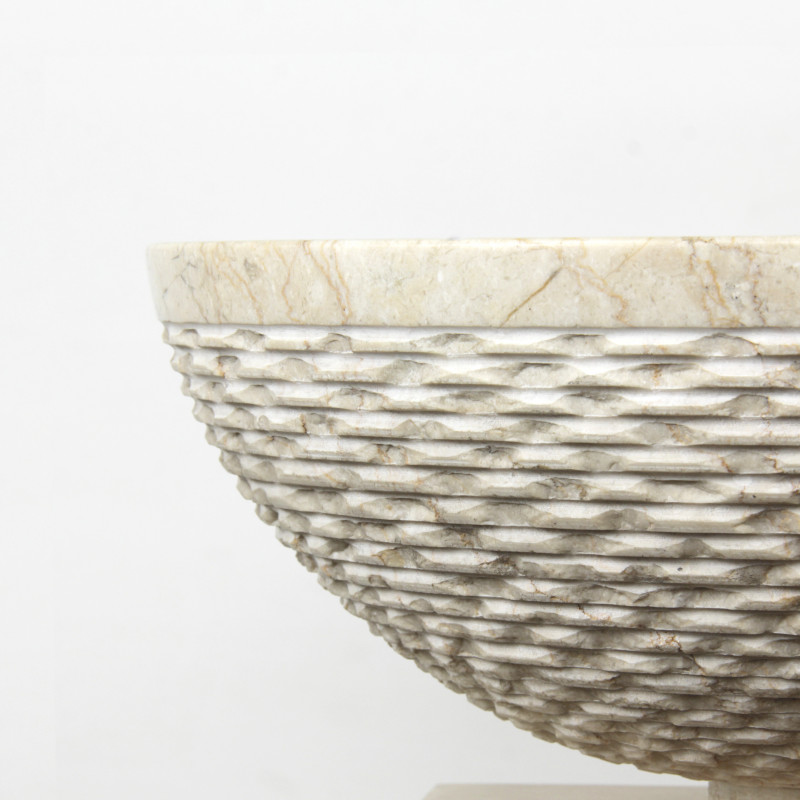 Chiselled Bowl brings an organic sense of texture and warmth into the space. Crafted from Stella Moreno marble, it features soft creamy tones enriched with gentle natural veining, creating a natural and grounded impression.