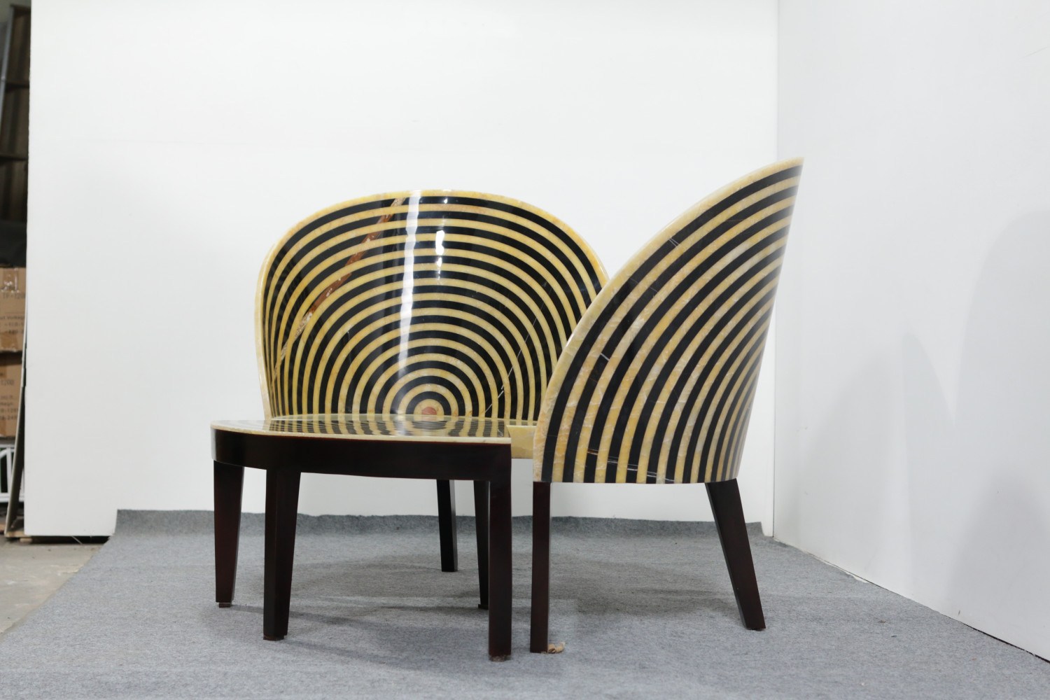 Flowing lines and layered patterns define its form, creating a sense of movement while maintaining a composed presence. The result is a refined seating set that functions as a subtle focal point, bringing character and warmth to curated, modern interiors