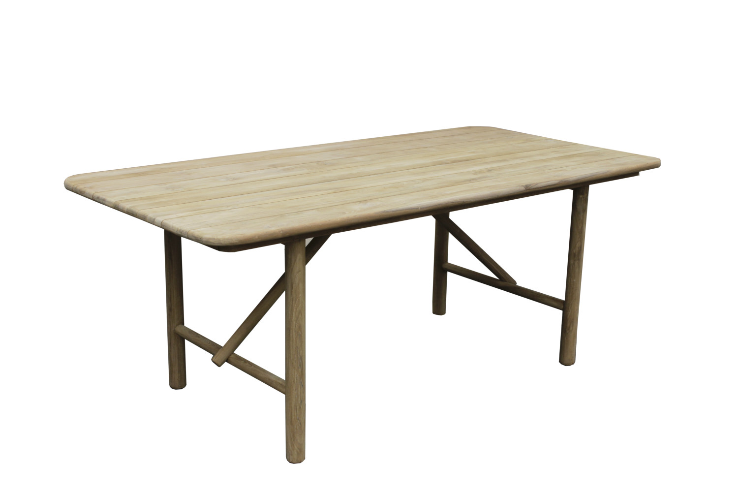 An outdoor dining table made from teakwood, desgined in knockdown construction to help reduce volume while shipping container. It will takes more quantity in one container.