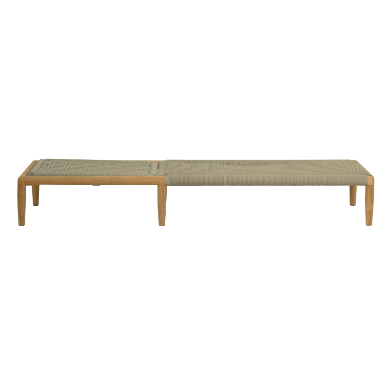 The frame is crafted from solid, weather-resistant wood, built to withstand the elements gracefully. The innovative use of woven synthetic rope for the seating area is a key feature, offering a supportive, quick-drying surface that stays cool even in direct sunlight. The adjustable backrest mechanism allows you to effortlessly select the perfect angle for sunbathing or reading.