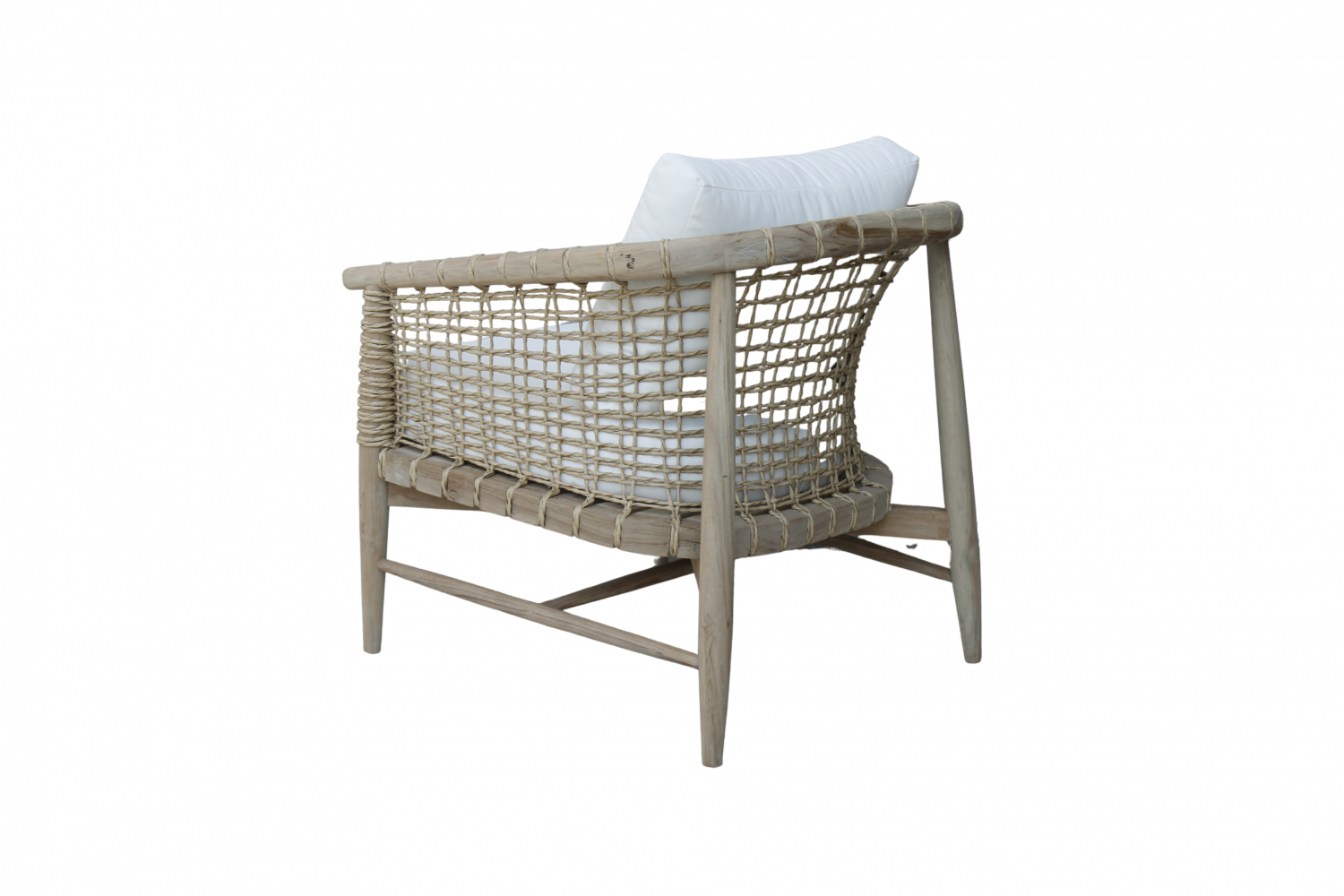 -NW : 19 kgBring natural elegance and relaxed comfort into your living space with this beautifully crafted 1-seater sofa. Designed with a sturdy wooden frame and handwoven rope sides, this sofa blends timeless craftsmanship with a modern tropical aesthetic.