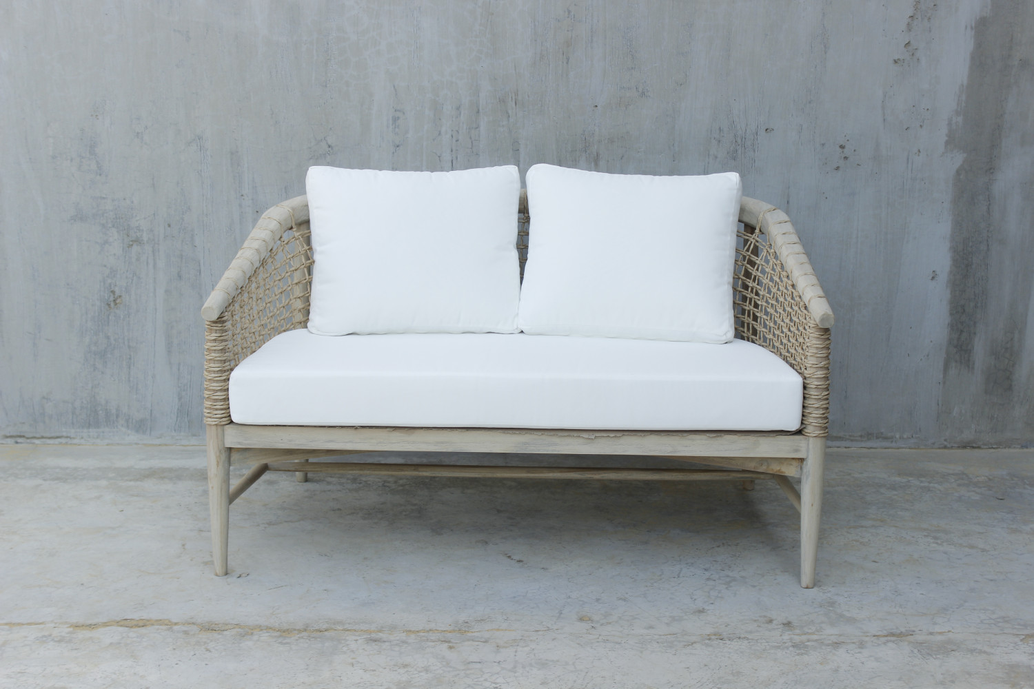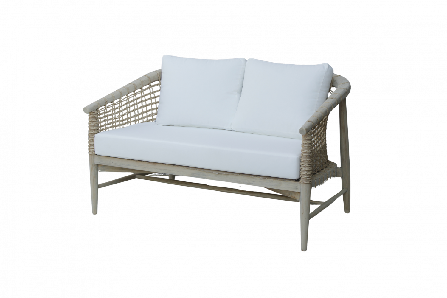 -NW : 30 kgBring natural elegance and relaxed comfort into your living space with this beautifully crafted 2-seater sofa. Designed with a sturdy wooden frame and handwoven rope sides, this sofa blends timeless craftsmanship with a modern tropical aesthetic.