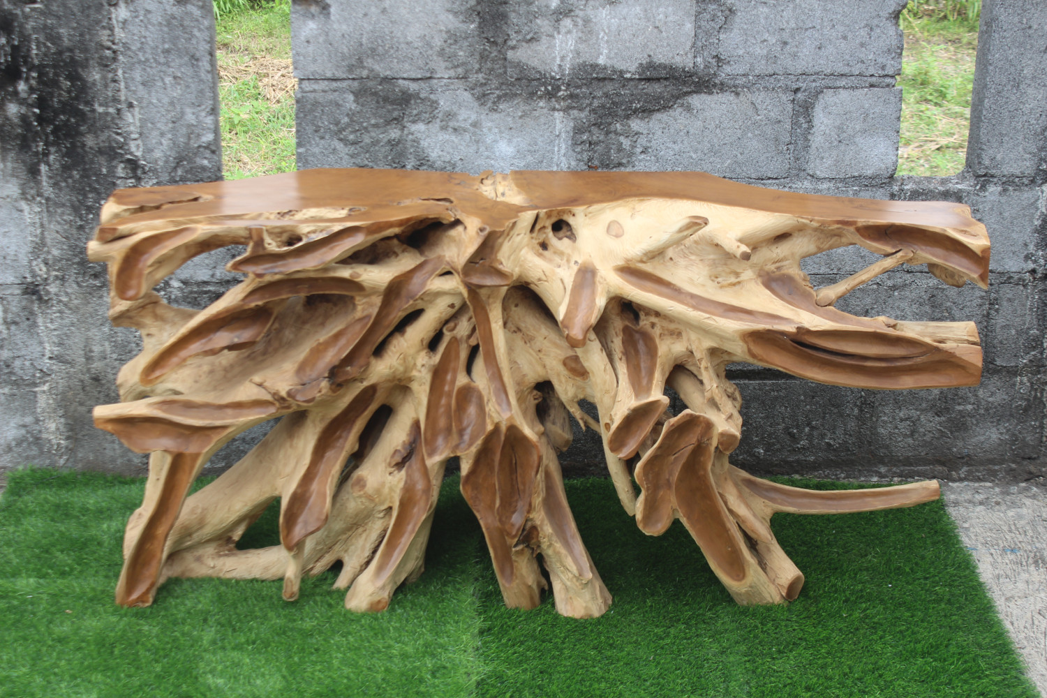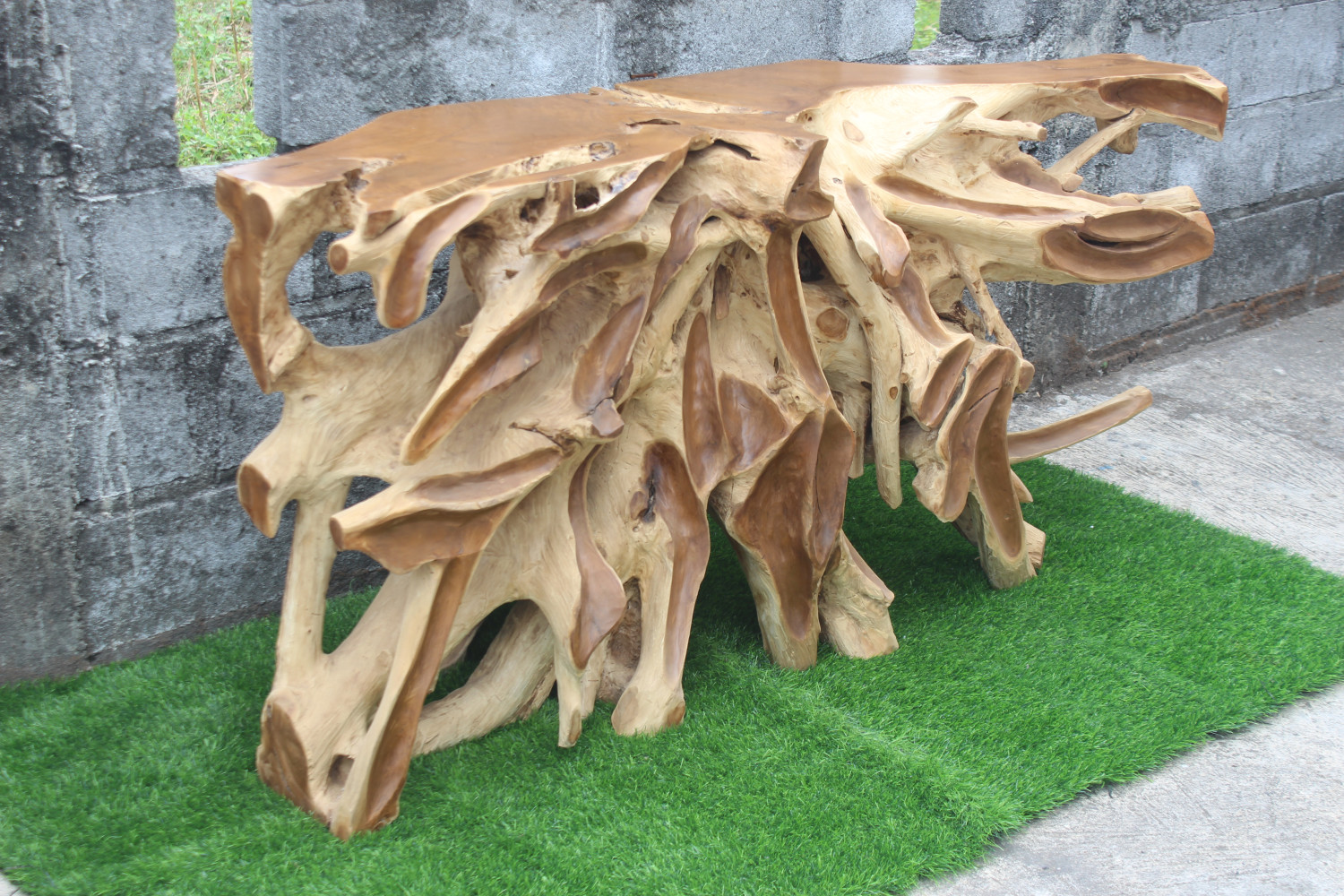 Teak Root Console Table with Carving adalah meja konsol yang terbuat dari kayu jati dengan finishing natural. Desain yang menonjolkan keindahan alami kayu dengan ukiran carving, menciptakan kesan klasik dan artistik. Fungsional sebagai meja di dalam rumah, produk ini juga memberikan sentuhan estetika yang istimewa. Dengan dimensi proporsionalnya, meja ini mudah ditempatkan di berbagai ruangan.