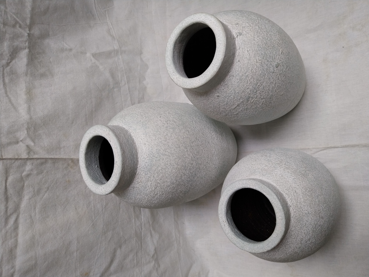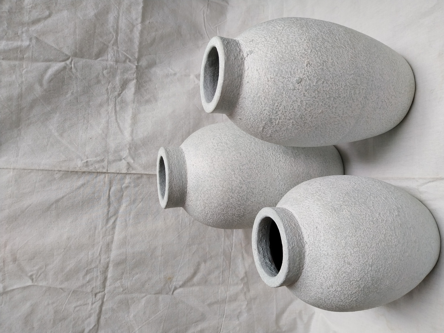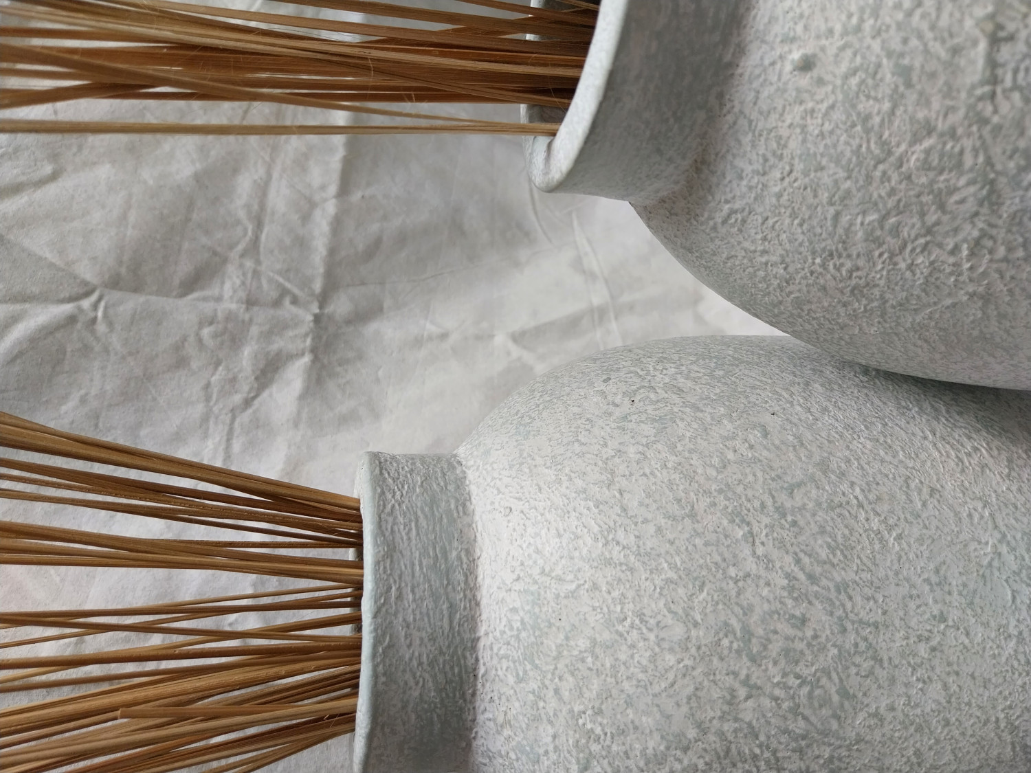 Vas keramik yang terbuat dari tanah liat terracotta dengan finishing cat, yang dibakar pada suhu 800o C. Berfungsi sebagai Vas Bunga Kering.