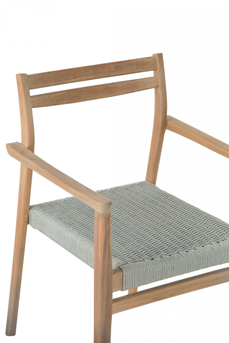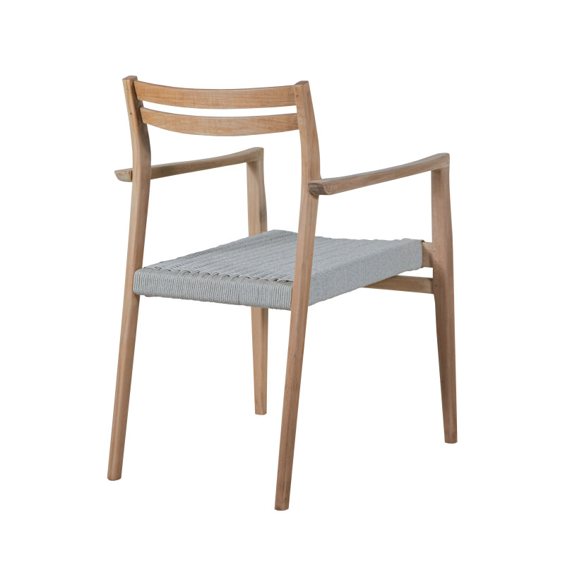 The rope backrest enhances the chair’s aesthetic appeal while offering breathability, flexibility, and comfort for extended use. With its ergonomic structure and well-placed armrests, the chair is designed to support relaxation—perfect for dining, lounging, or entertaining.