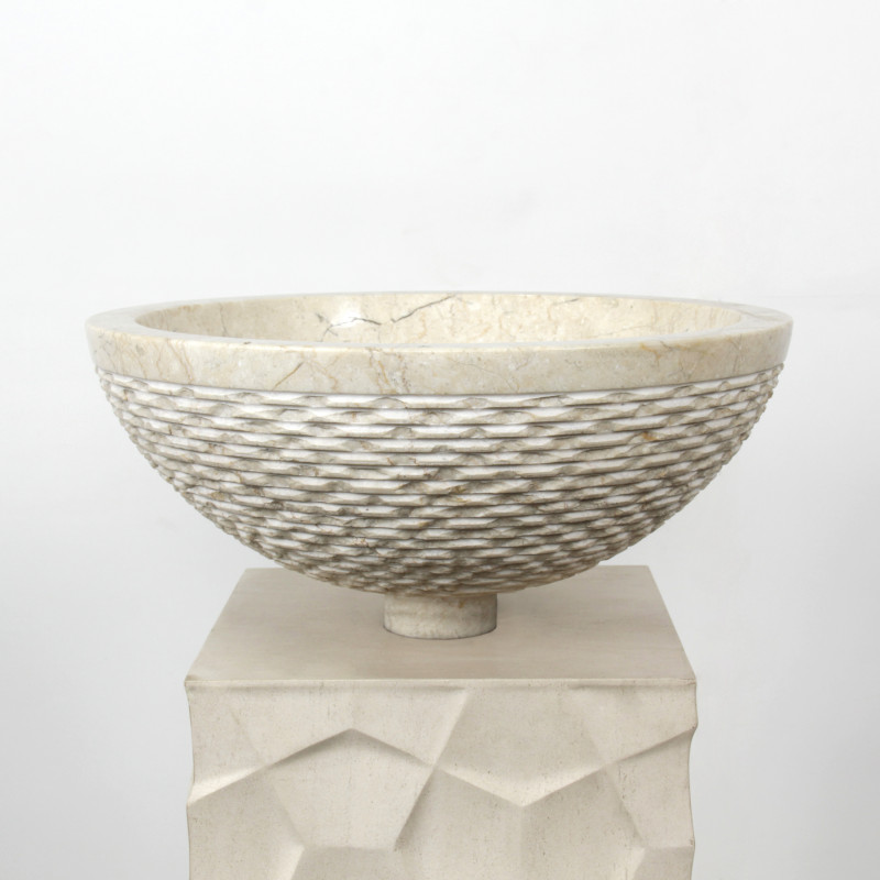 Chiselled Bowl brings an organic sense of texture and warmth into the space. Crafted from Stella Moreno marble, it features soft creamy tones enriched with gentle natural veining, creating a natural and grounded impression.