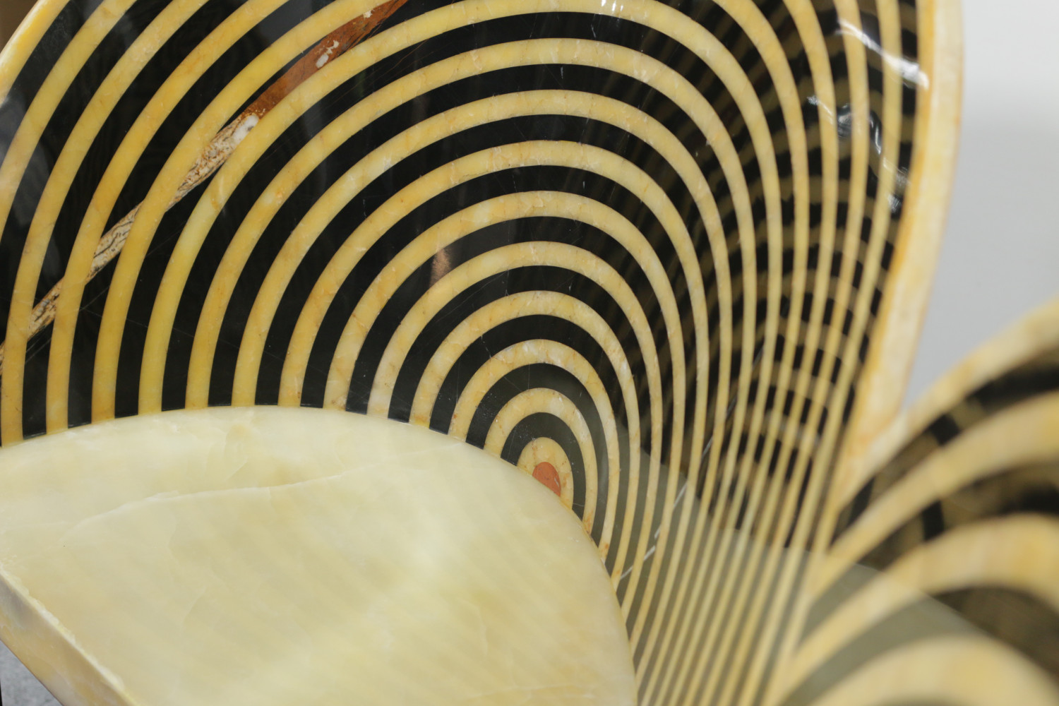 The Genso Bended Love Seat & Table Set combines sculptural curves with the richness of natural stone. Crafted from Onyx Pretoria and Noir St. Laurent, the set highlights the natural translucency of onyx, contrasted by the depth and precision of dark stone accents.