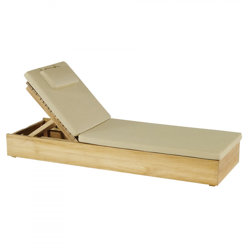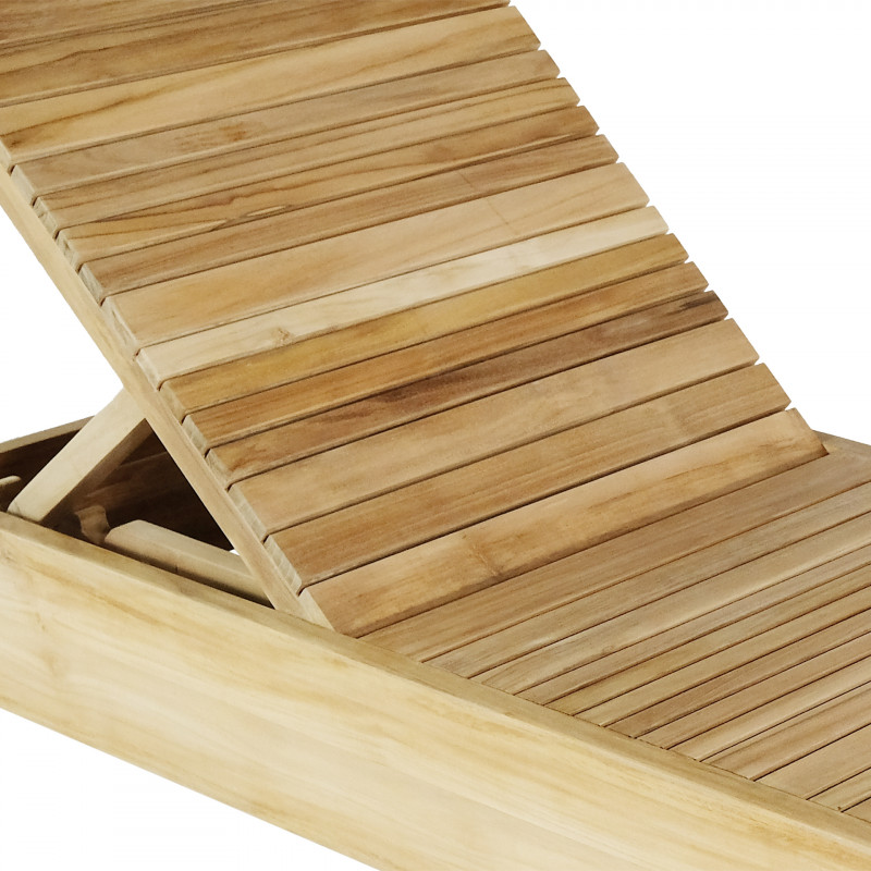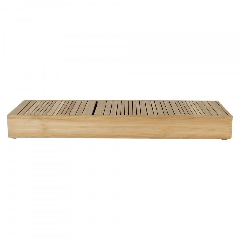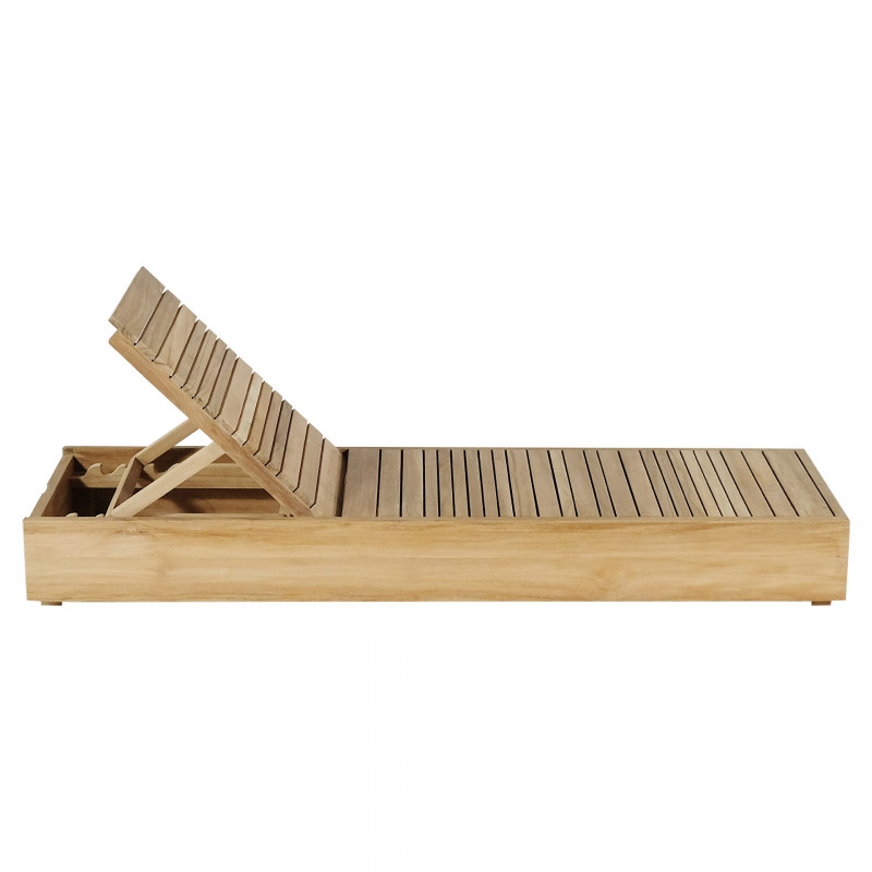 Built from solid, weather-resistant wood, this lounger is engineered to gracefully endure the most demanding outdoor conditions. The slatted construction across both the backrest and main body is not merely decorative; it is a crucial functional element for outdoor use, ensuring quick water drainage and optimal air circulation, thereby preserving the lounger's condition through changing seasons. The integrated side compartment offers convenient storage for a drink,sunscreen, or a book.