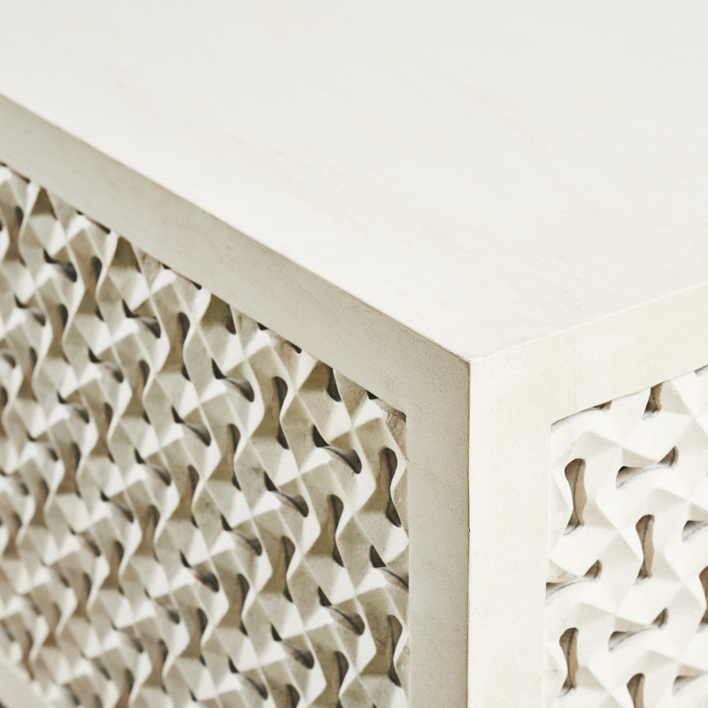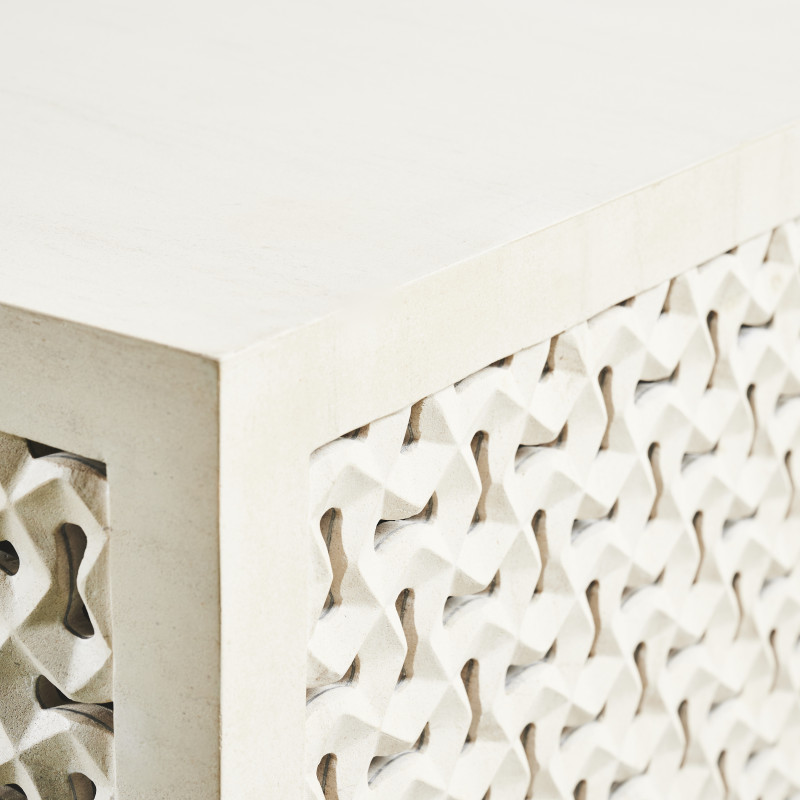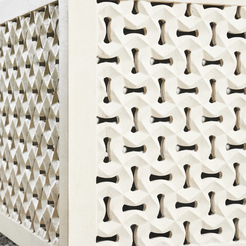 Lattice Coffee Table presents itself as a calm, grounding presence. Crafted from Moca Cream limestone, its soft surface reveals the stone’s natural tones with a warm character, while the lattice detailing creates a subtle play of shadow that adds depth without excess.
