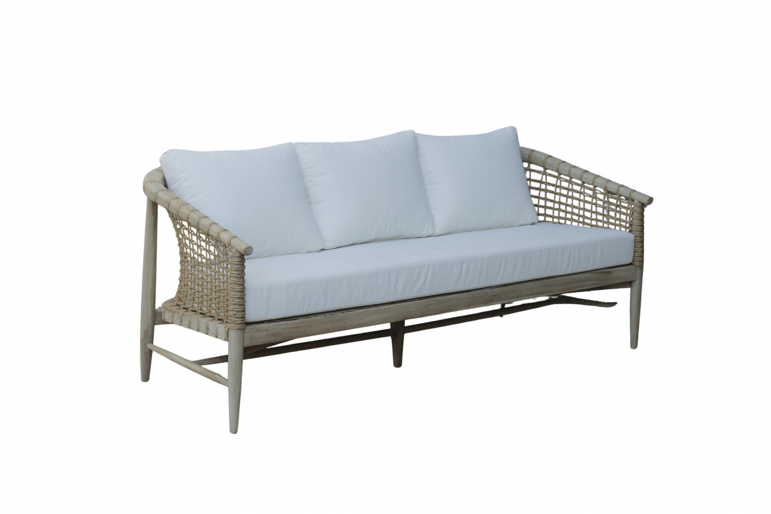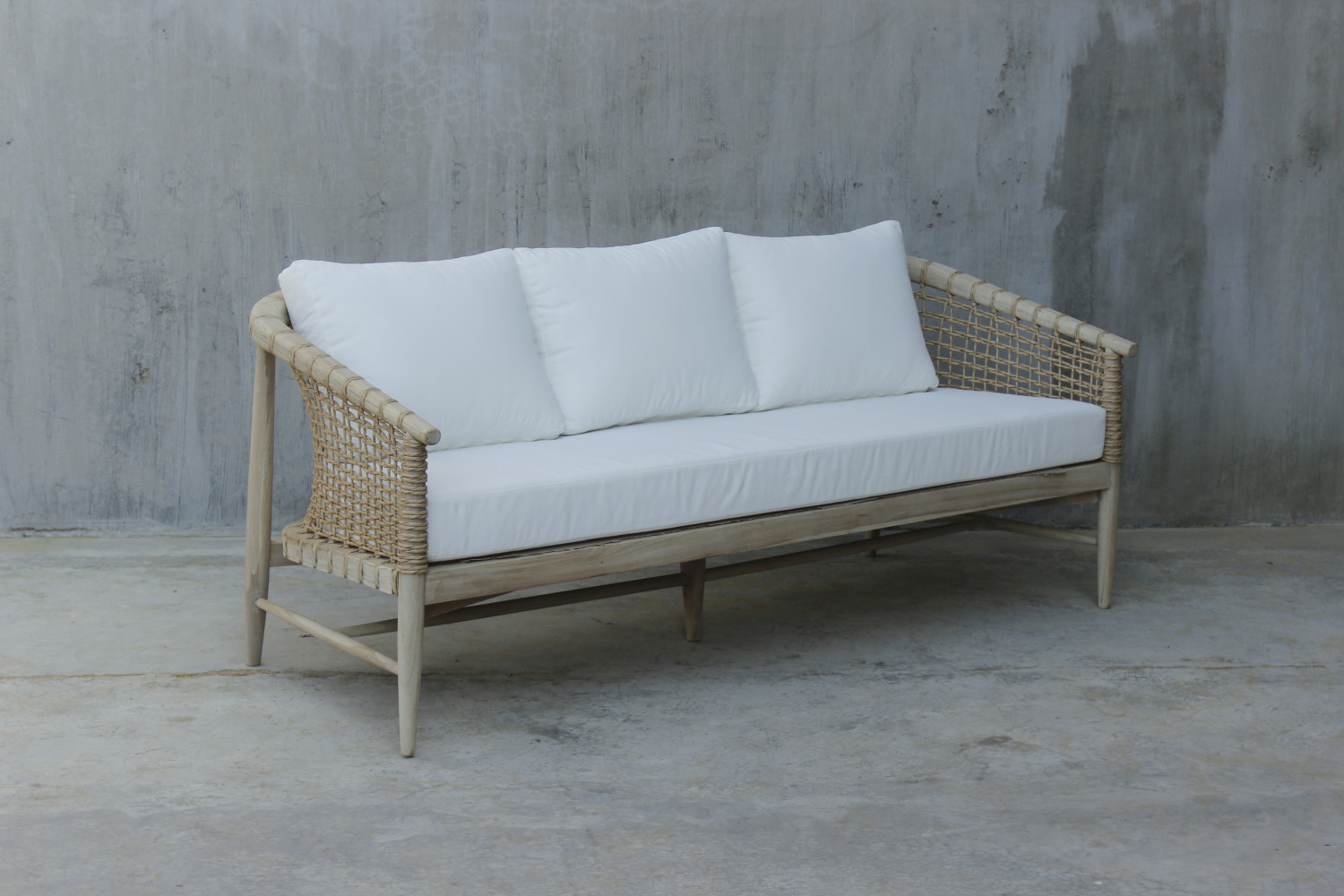 Bring natural elegance and relaxed comfort into your living space with this beautifully crafted 3-seater sofa. Designed with a sturdy wooden frame and handwoven rope sides, this sofa blends timeless craftsmanship with a modern tropical aesthetic.