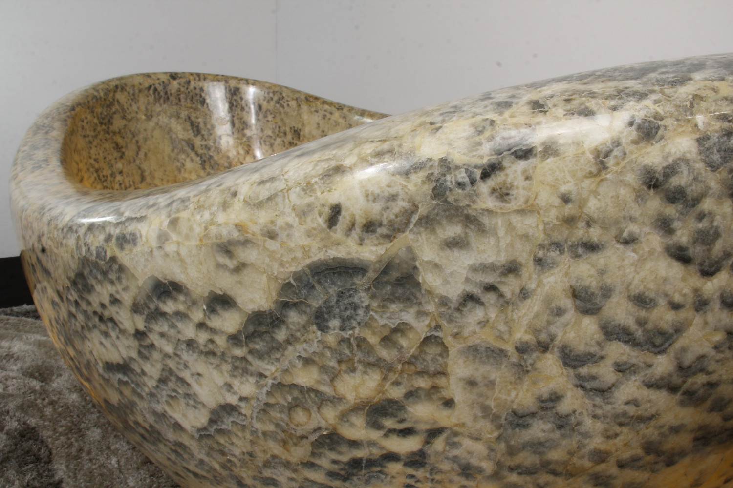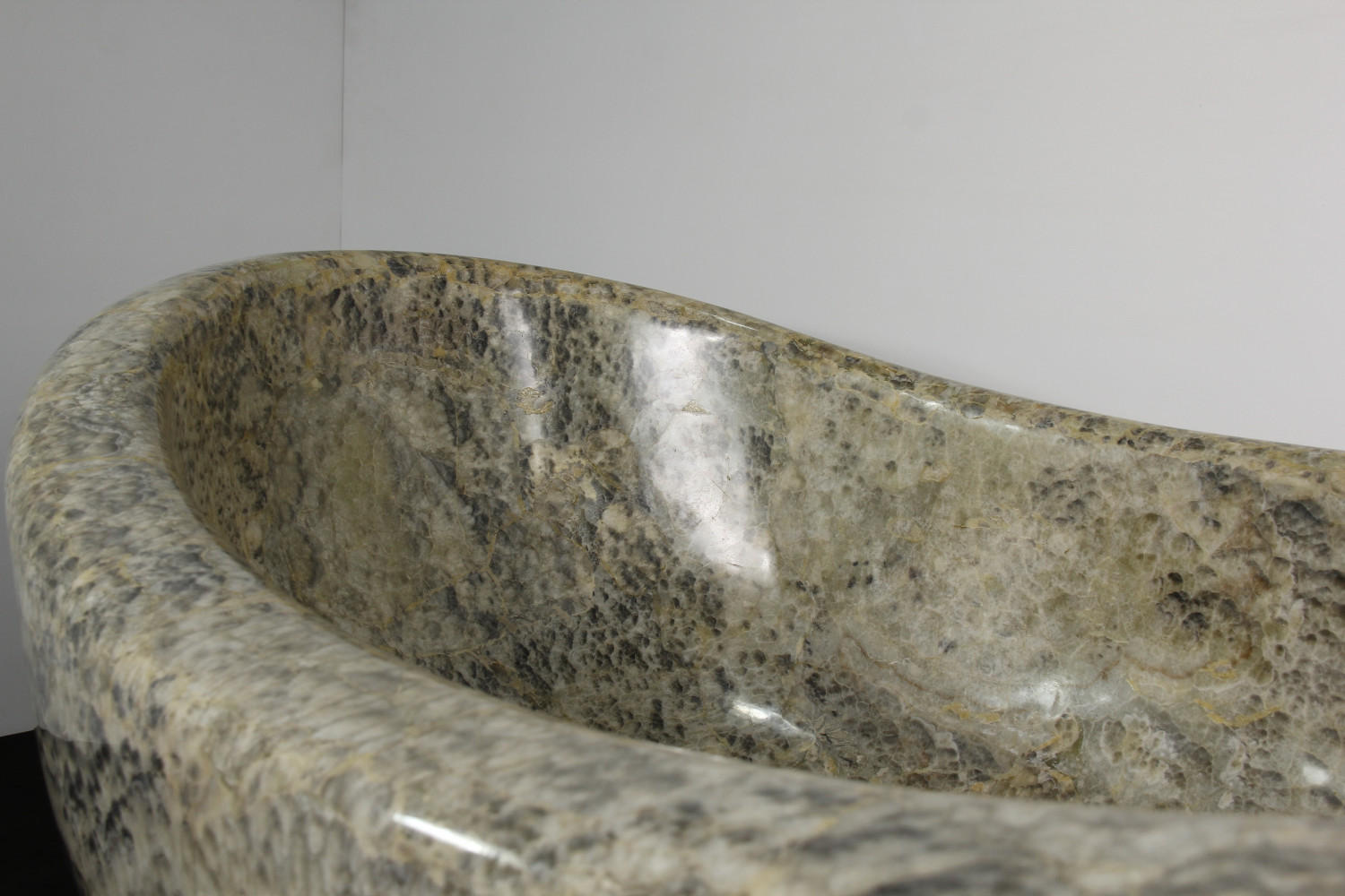 This stunning bathtub is formed by artisans bending sheets of earth’s greatest expression of art, Onyx, using MM Galleri’s groundbreaking Bended Marble technology. This patented technique allows us to slice 2mm-thin sheets of Onyx and bend them into fluid shapes using a systematic application of heat. The economic use of marble ensures both weight and cost are kept low. Plunge into this opulent, amber cocoon that reflects golden droplets of elixir and commands the centre of attention in the bathroom.