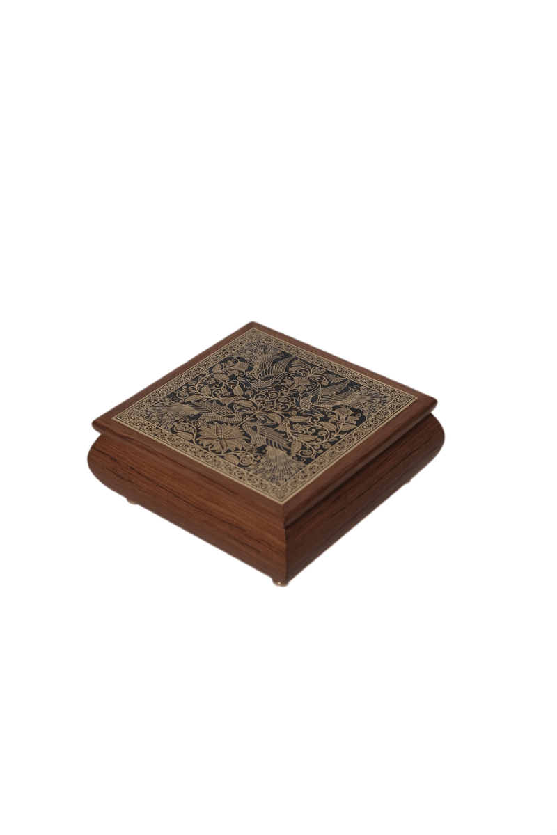 Terinspirasi oleh semangat tradisi dan budaya Jawa yang dijunjung tinggi oleh Solo, Peksi Merak Music Box adalah kolaborasi antara Kriya Nusantara dan Nidec Sankyo Jepang untuk menjaga warisan kota Solo. Untuk desain kotaknya, pola peksi merak diterapkan sebagai ornamennya. Pola ini terdiri dari kontur bunga dan burung merak yang berdiri berdampingan dalam ketenangan, mencerminkan keindahan alam Indonesia. Untuk membangkitkan suasana Solo, music box memainkan melodi dari "Bengawan Solo," sebuah lagu yang menggambarkan Sungai Bengawan dengan penuh kerinduan, oleh virtuoso Gesang Martohartono yang sangat dihormati oleh masyarakat Indonesia dan Jepang.