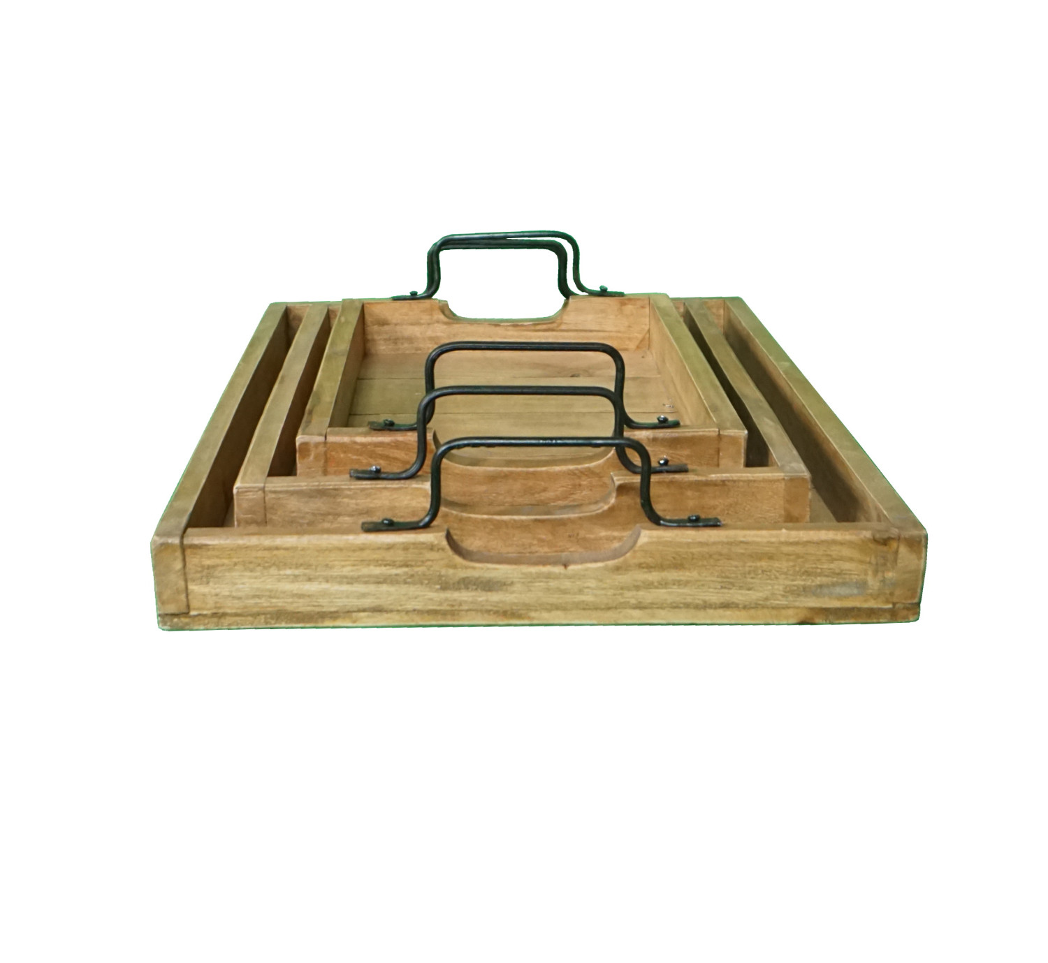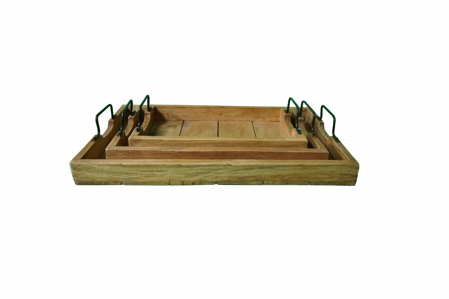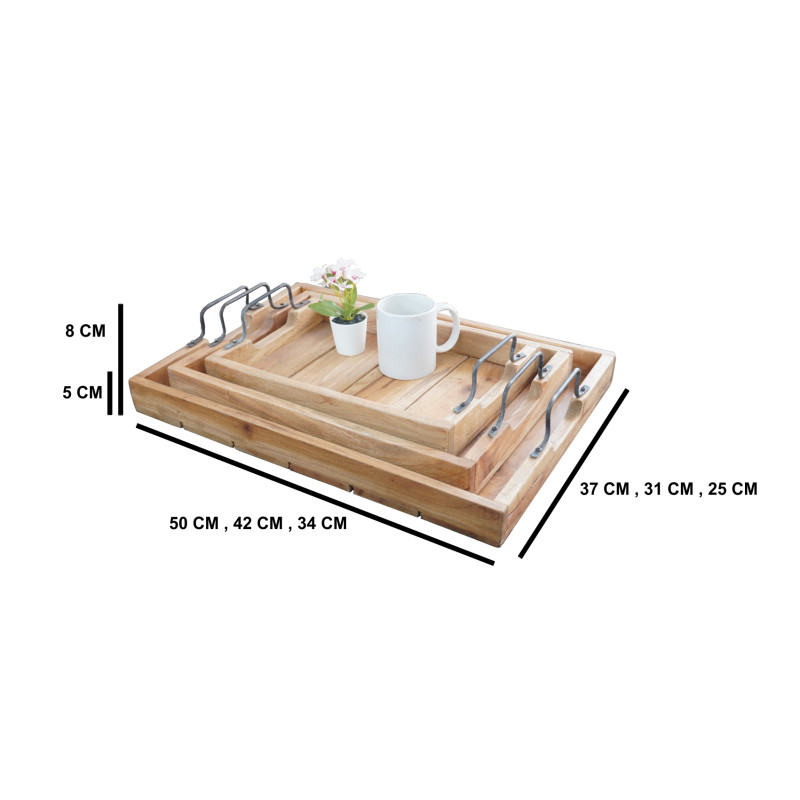 NKB 1413 adalah baki atau nampan kayu set 3 multifungsi yang bisa digunakan sebagai media saji untuk makanan atau minuman, dengan material kayu mahoni bekas dan difinishing dengan cairan laquer sehingga awet dan tahan lama.