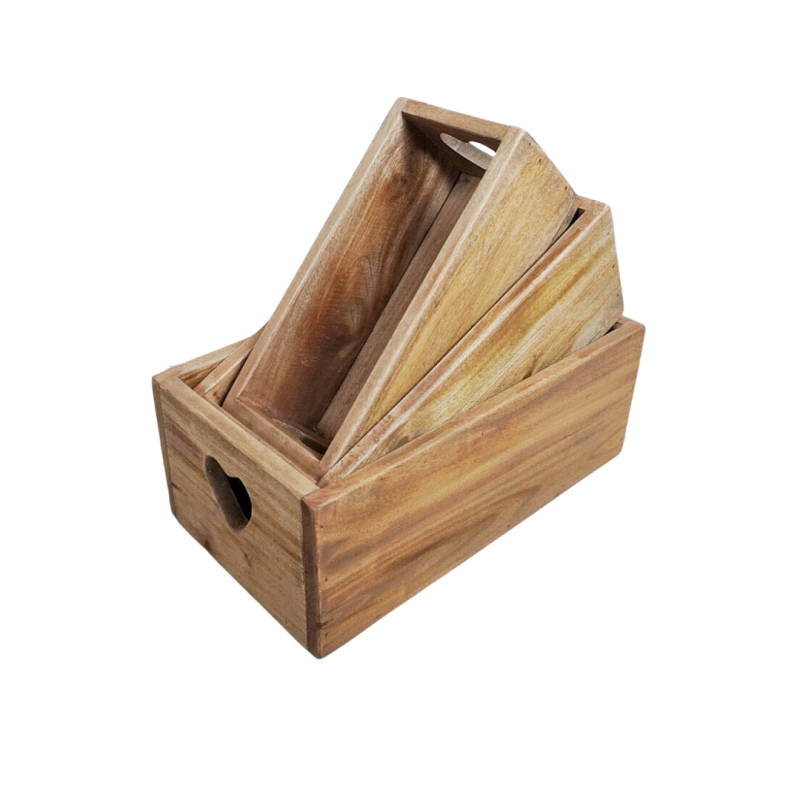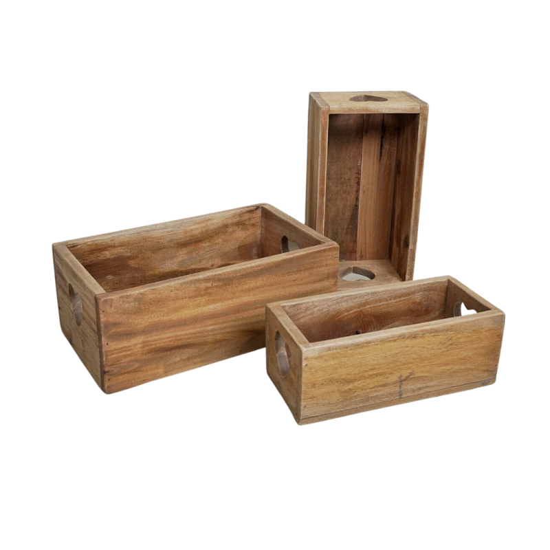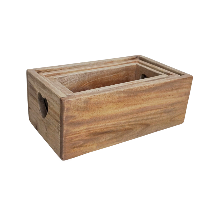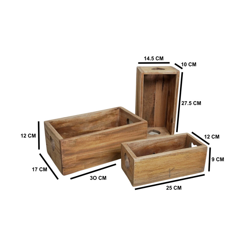 NKB 904 S/3 adalah kotak kayu set 3 multifungsi yang bisa digunakan sebagai kotak penyimpanan, dengan material kayu mahoni bekas dan difinishing dengan cairan laquer sehingga awet dan tahan lama.