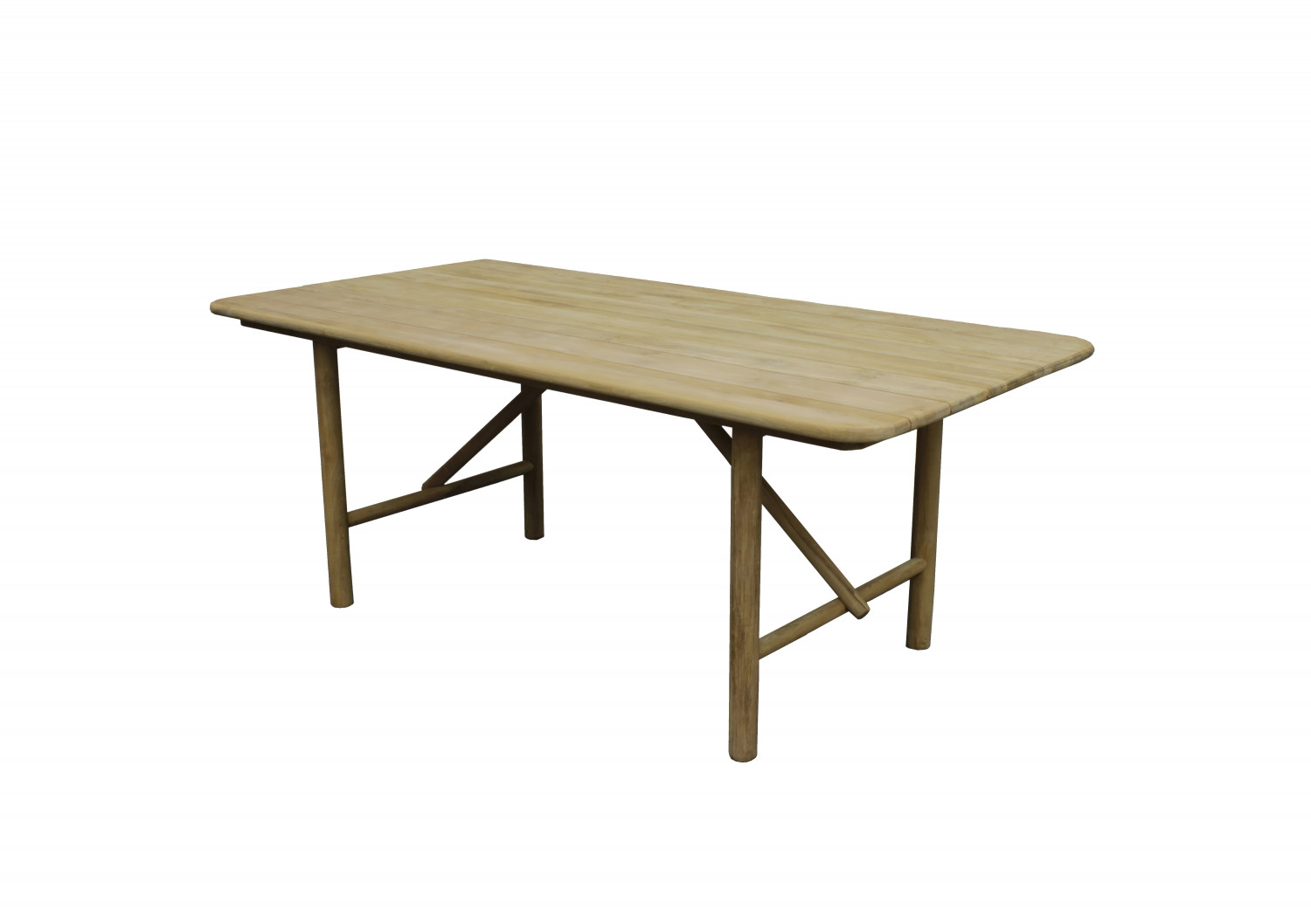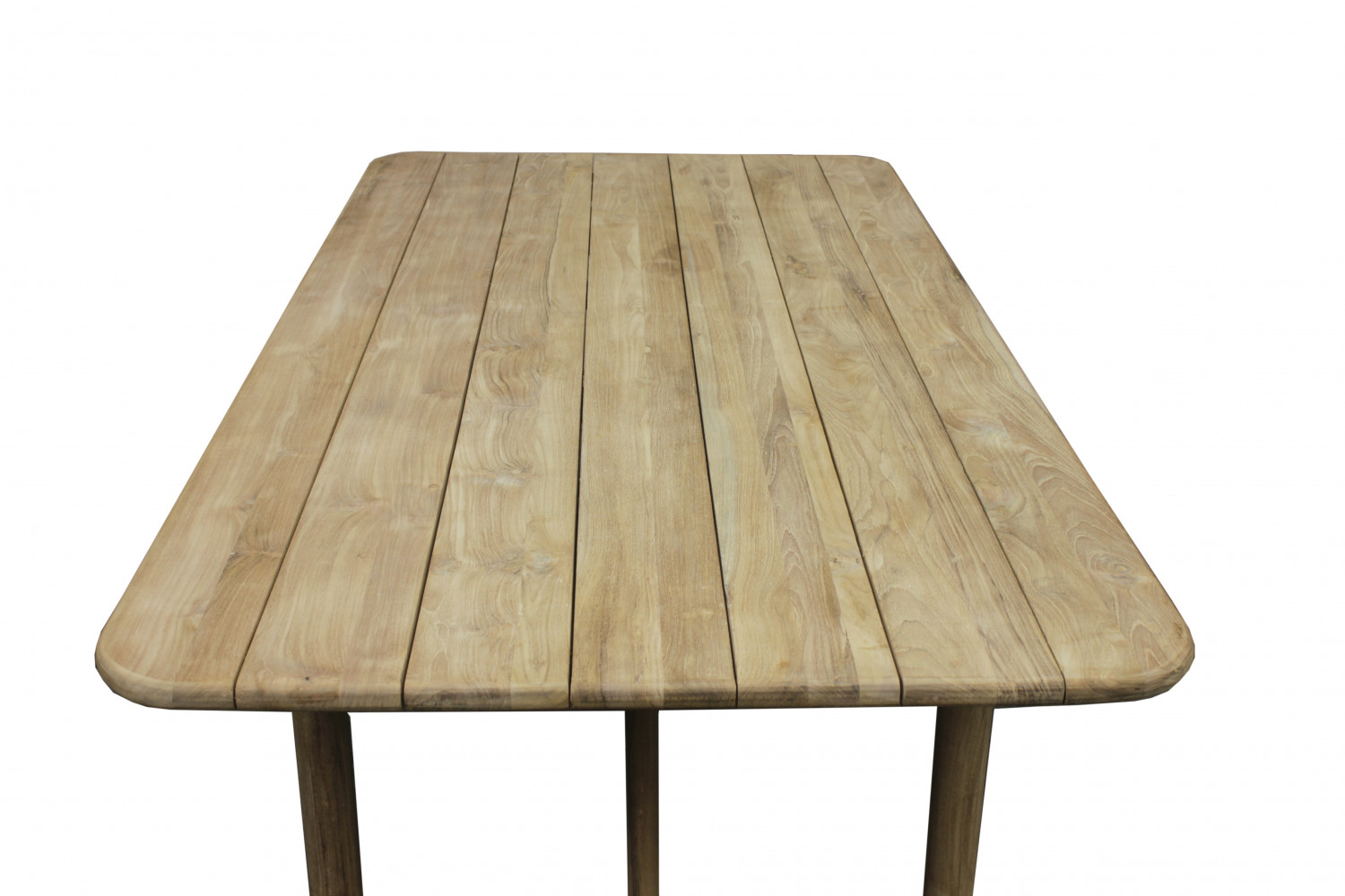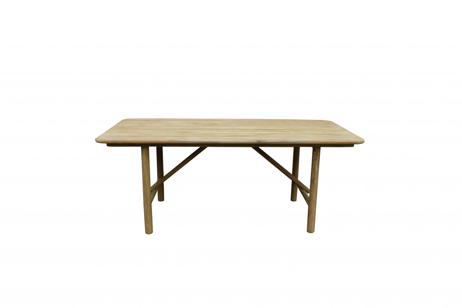 An outdoor dining table made from teakwood, desgined in knockdown construction to help reduce volume while shipping container. It will takes more quantity in one container.