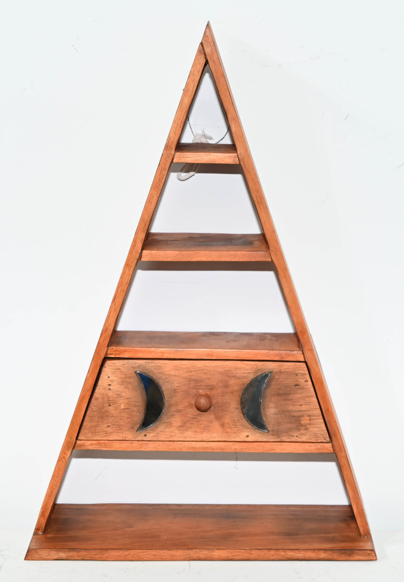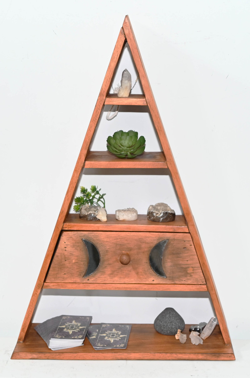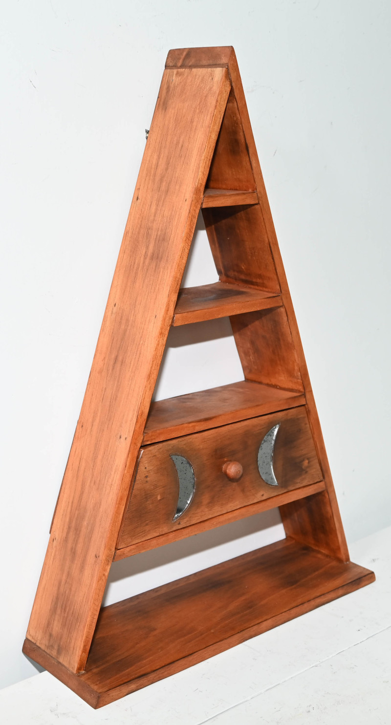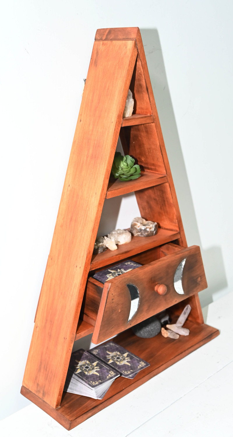 Rak pajangan terbuat dari kayu dengan desain yang natural tetap memberi kesan sederhana namun elegan dengan ditambahkannya laci sebagai tempat aksesoris.